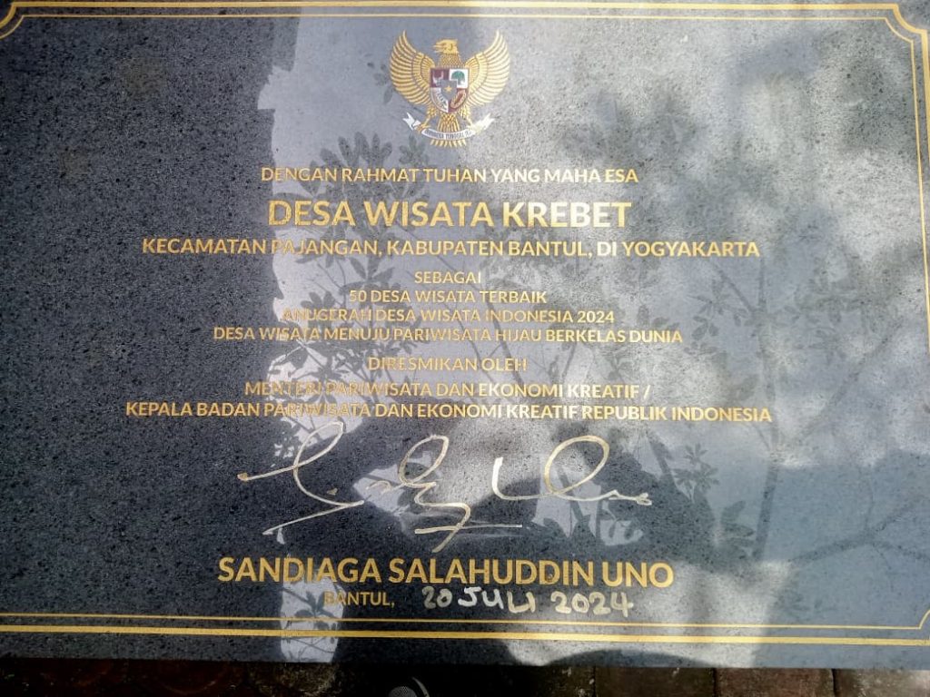 Desa Wisata Krebet di Kalurahan Sendangsari, Kapanewon Pajangan, Kabupaten Bantul, meraih Juara I dalam kategori Kelembagaan dan Sumber Daya Manusia pada Anugerah Desa Wisata Indonesia (ADWI) 2024. Penghargaan ini diberikan oleh Kementerian Pariwisata dan Ekonomi Kreatif pada acara puncak di Taman Mini Indonesia Indah (TMII), Jakarta, Minggu, 17 November 2024.