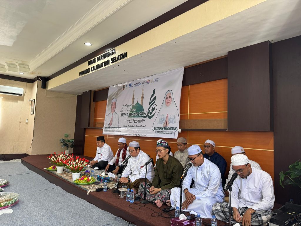 Kertak Hanyar. Keluarga Besar Dinas Pariwisata Provinsi Kalimantan Selatan menggelar Kegiatan Peringatan Maulid Nabi Besar Muhammad SAW 1447 H pada Kamis, 18 September 2025. Bertempat di Aula Rapat Lantai 2 Kantor Dinas Pariwisata Provinsi Kalimantan Selatan, Jln. Jend. A. Yani Km 7,5, Kertak Hanyar, Kab. Banjar, acara ini berlangsung dengan khidmat.