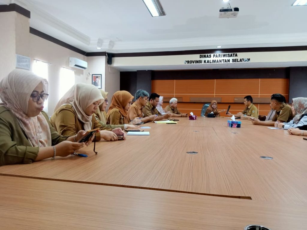 Kegiatan entry meeting dilaksanakan di Aula Dinas Pariwiata Provinsi Kalimantan Selatan pada Senin, 03 Oktober 2025 dengan dihadiri oleh Kepala Dinas Pariwisata, Iwan Fitriady, S.H.,M.H melalui Sekretaris, Dr. Tanwiriah, S.Kep.,Ners.,M.M.Kes beserta Kepala Bidang dan Kepala Seksi/Sub Bagian lingkup Dinas Pariwisata Provinsi Kalimantan Selatan.