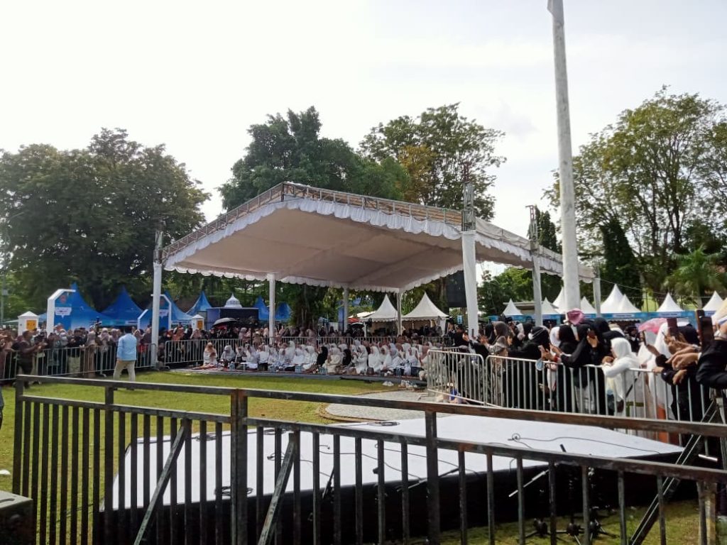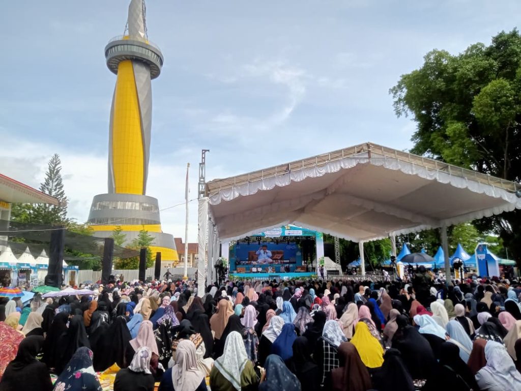 Banjarmasin. Pagi Jumat, 21 November 2025, South Kalimantan Tourism Islamic Fair di Kawasan Ex Kantor Gubernur Kalimantan Selatan Siring 0 Kilometer, Banjarmasin dipadati jemaah yang datang untuk mendengarkan Tausiah dari Ustadz Hilman Fauzi.