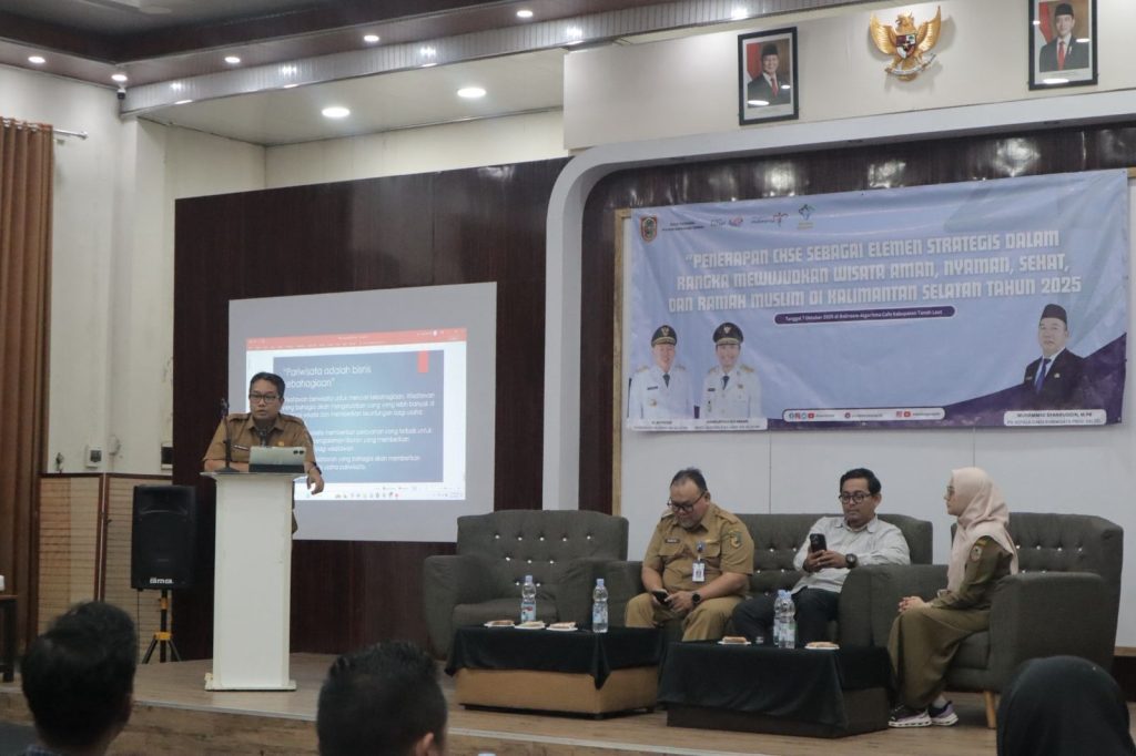 Tanah Laut. Bertempat di Kabupaten Tanah Laut, Dinas Pariwisata Provinsi Kalimantan Selatan menggelar Bimtek Penerapan CHSE Sebagai Elemen Strategis Dalam Rangka Mewujudkan Wisata Aman, Nyaman, Sehat dan Ramah Muslim di Kalmantan Selatan pada 6-8 Oktober 2025.